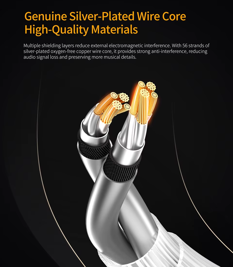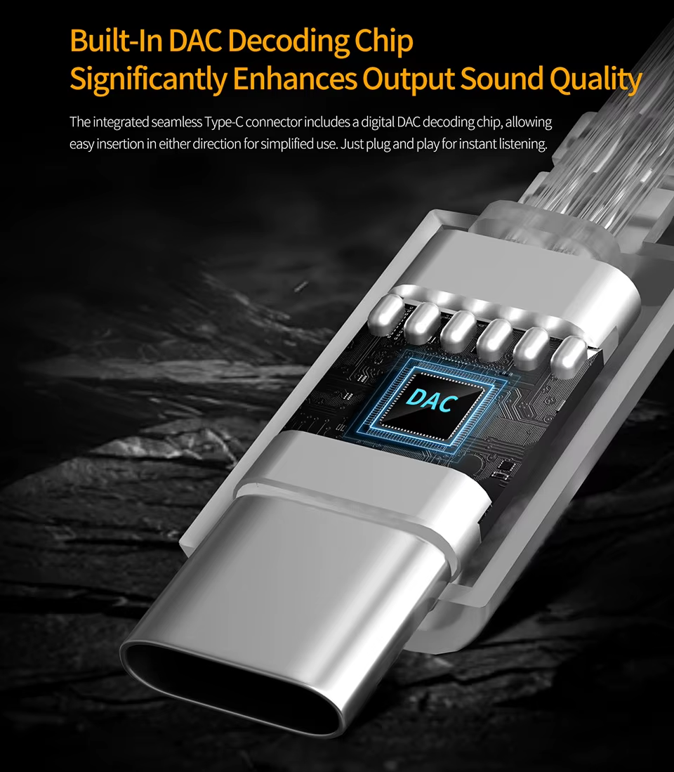 Cable KZ tipo C con chip decodificador DAC incorporado mejora significativamente la calidad del sonido. El conector Tipo C es compatible con la mayoría de dispositivos conocidos, permite un fácil uso, conéctelo y escucha al instante.